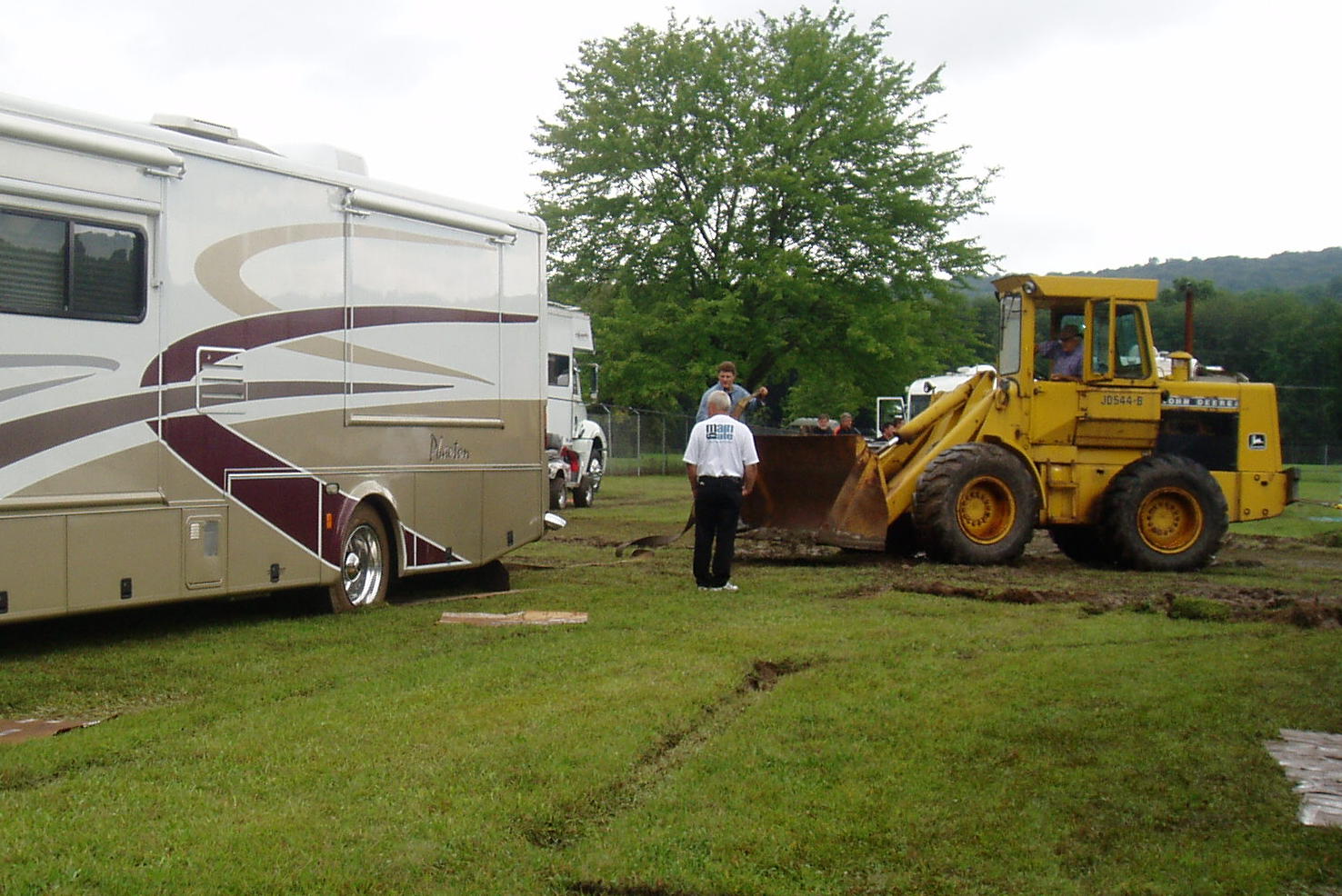 the soft dirt and take their chances. A few of them made it out on their own by driving very slow and straight, but most of the motorhomes had too far to drive