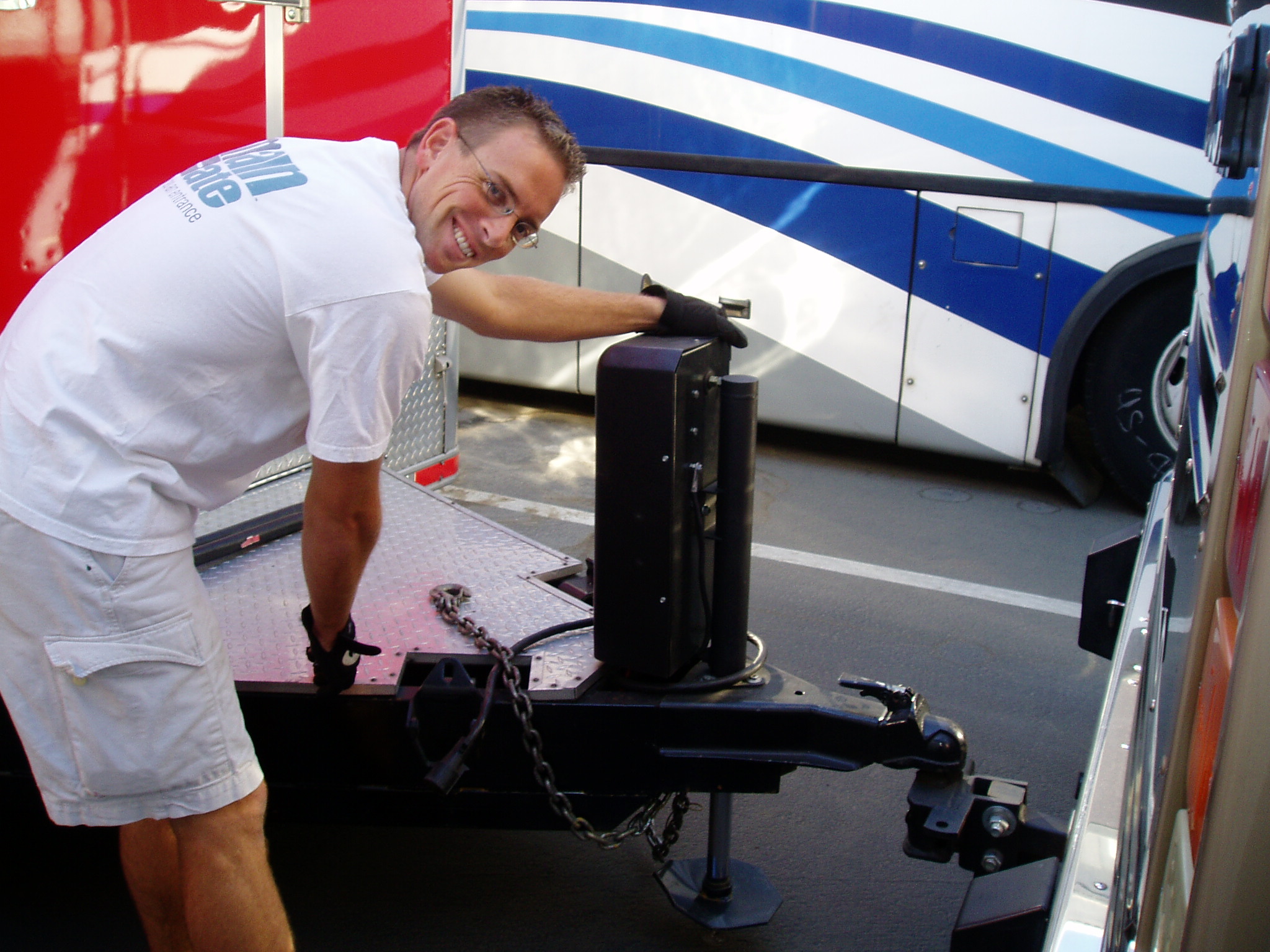 the last time we had to hook up the trailer to the bus and tow it anywhere. Frank is ecstatic! No more greasy hitch, no more lining up the bus in order to get the