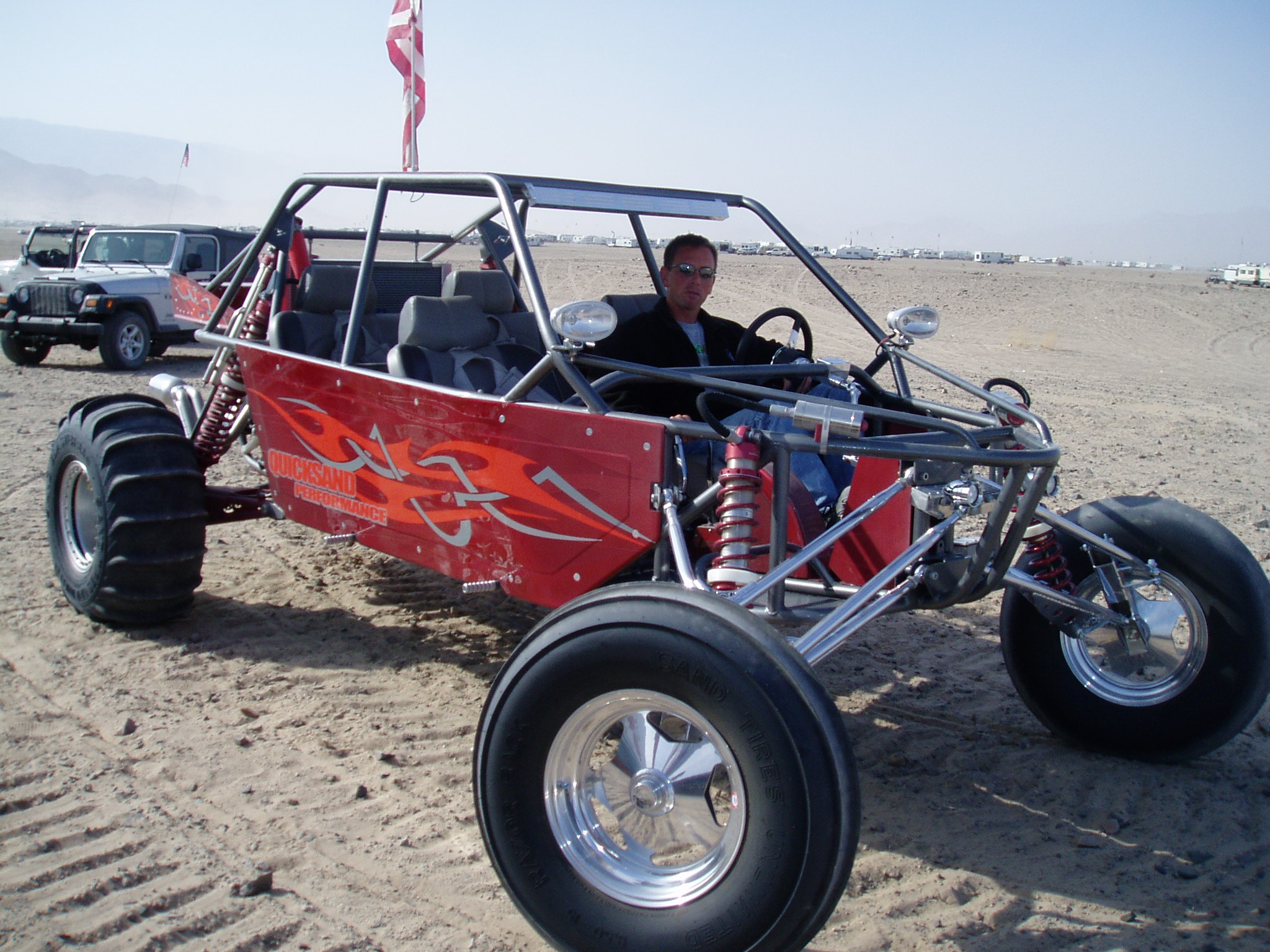 the sand was flat without dunes, so John tested out the speed factor of the Sand Car and got it up to 95.5mph. Not quite as fast as the Top Fuel Dragster, but