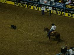 Again, a fairly self-explanatory sport. The cowboy again starts out on his horse with a rope in his hands and one in his teeth. He first tries to lasso the little calf