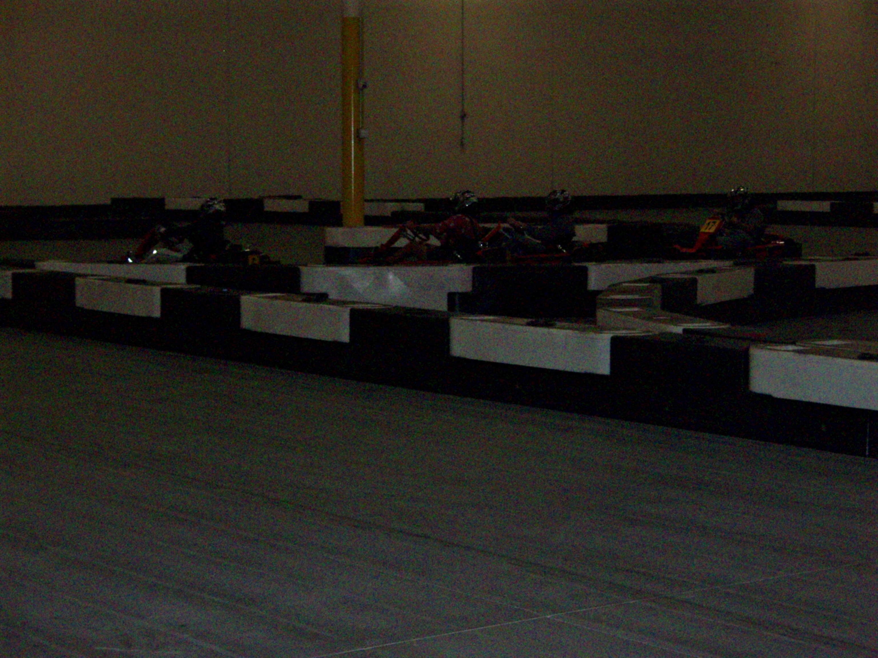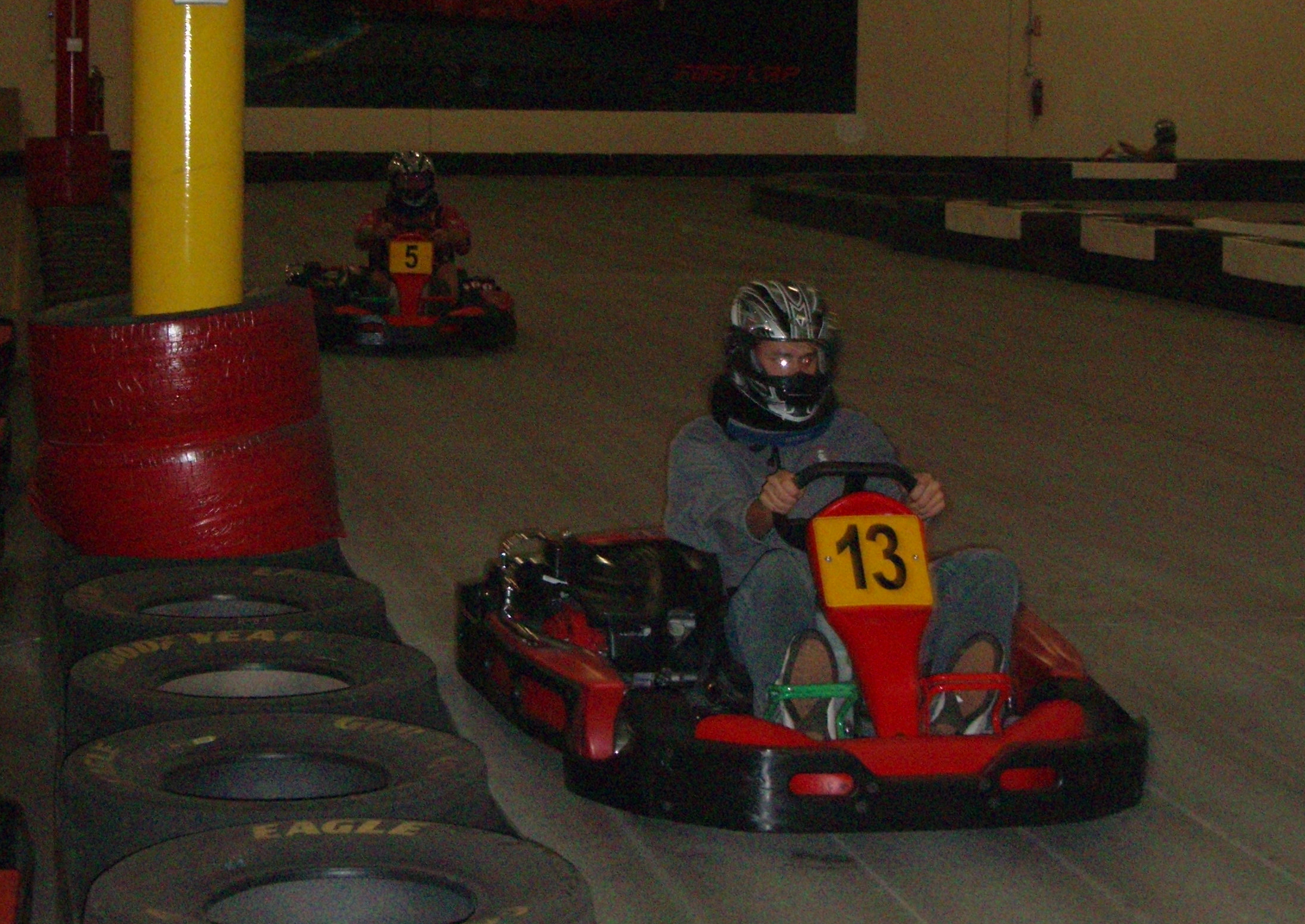 second to the last lap Sean came around the sharpest corner a bit too fast and ended up sideways facing the on-coming traffic. Frank, being so close behind