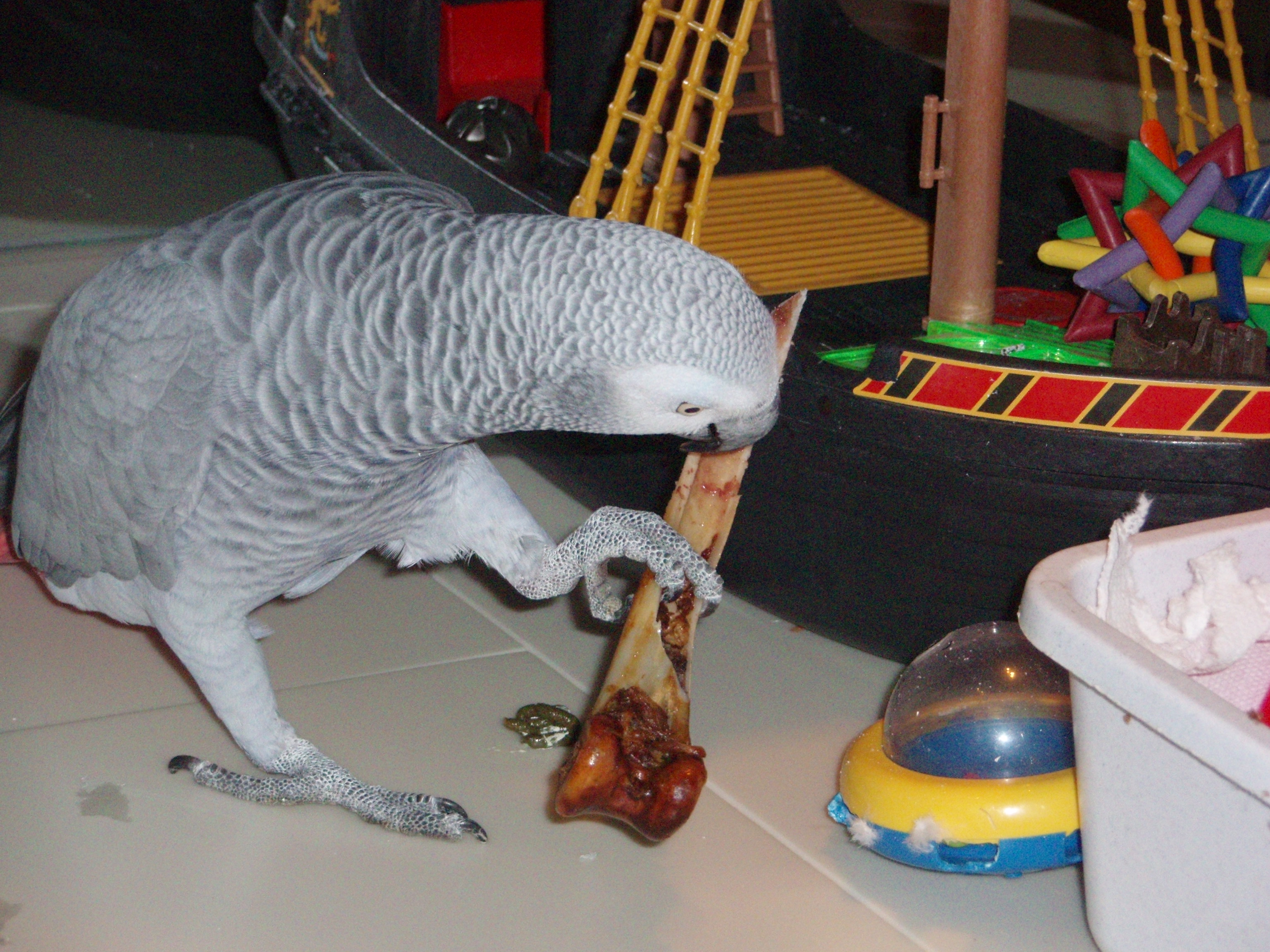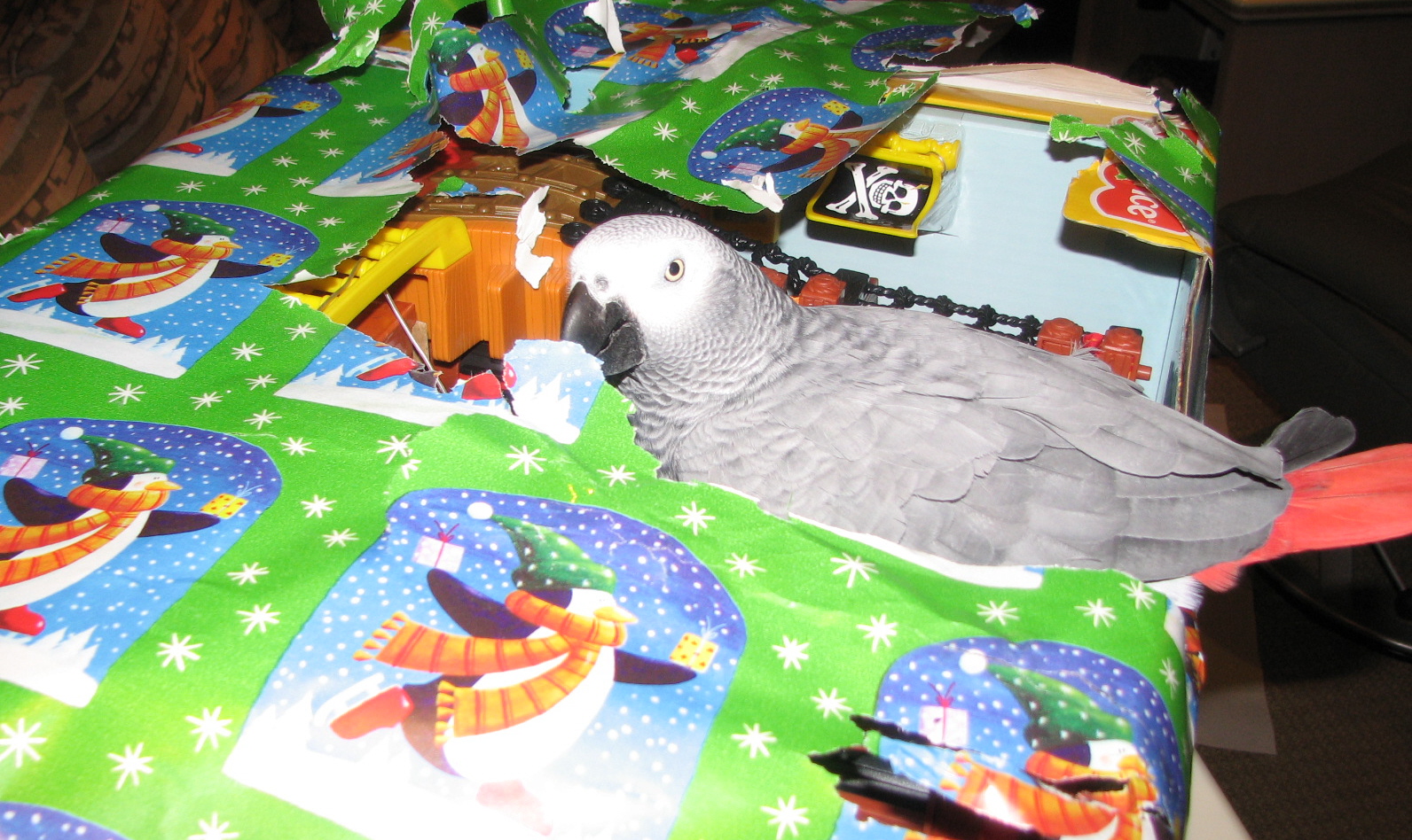 balls, and next a sword to fight the other pirates on the ship. Once the present was opened, set up and in working order, with sword in hand, um I mean beak, he