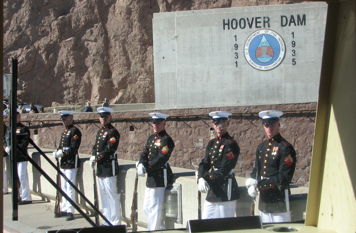 The caravan drives over Hoover Dam