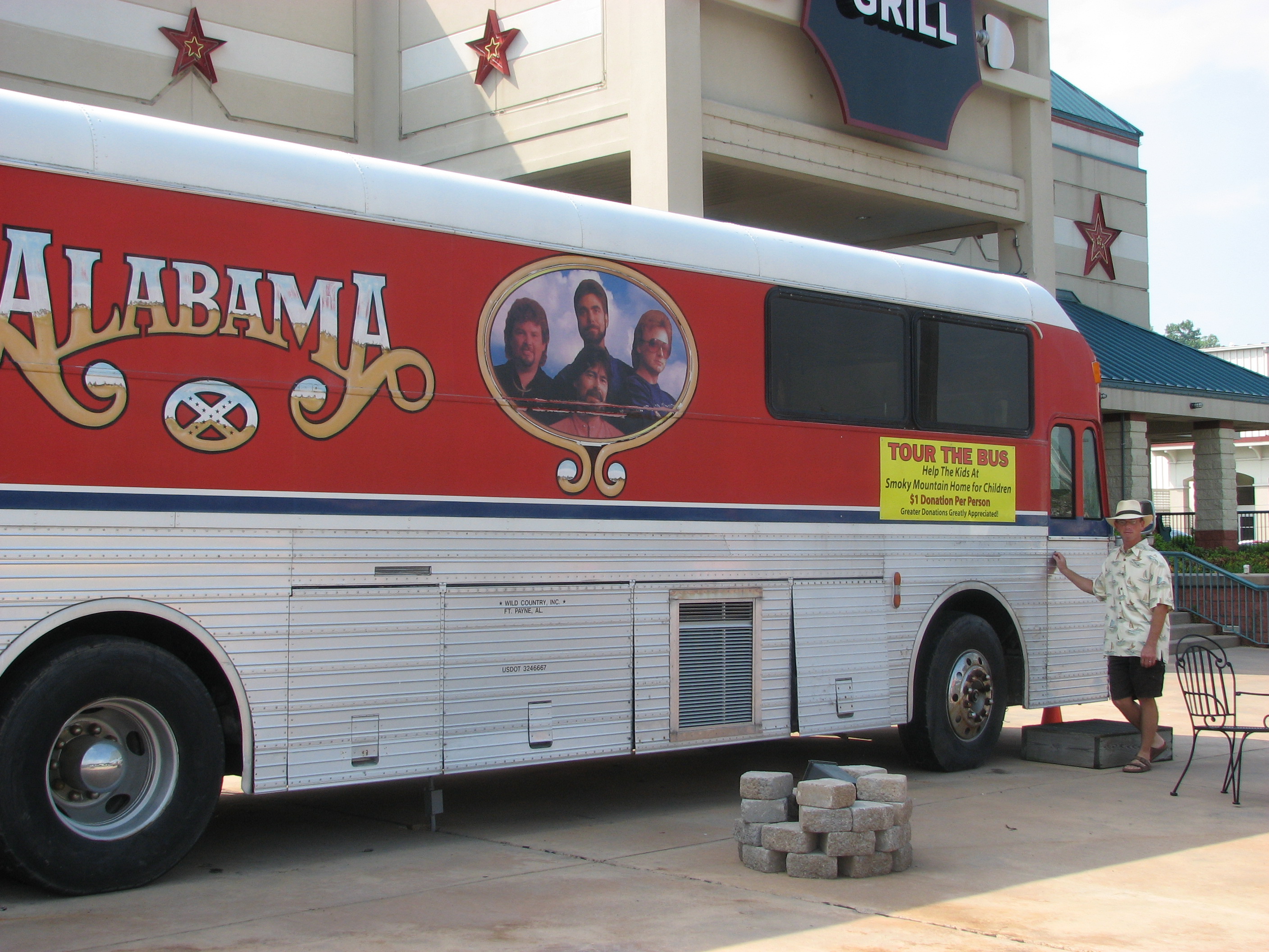 place to find a Panama hat, but isn't that always the case? In front of one of the restaurants was the old bus that the band Alabama used for their early day