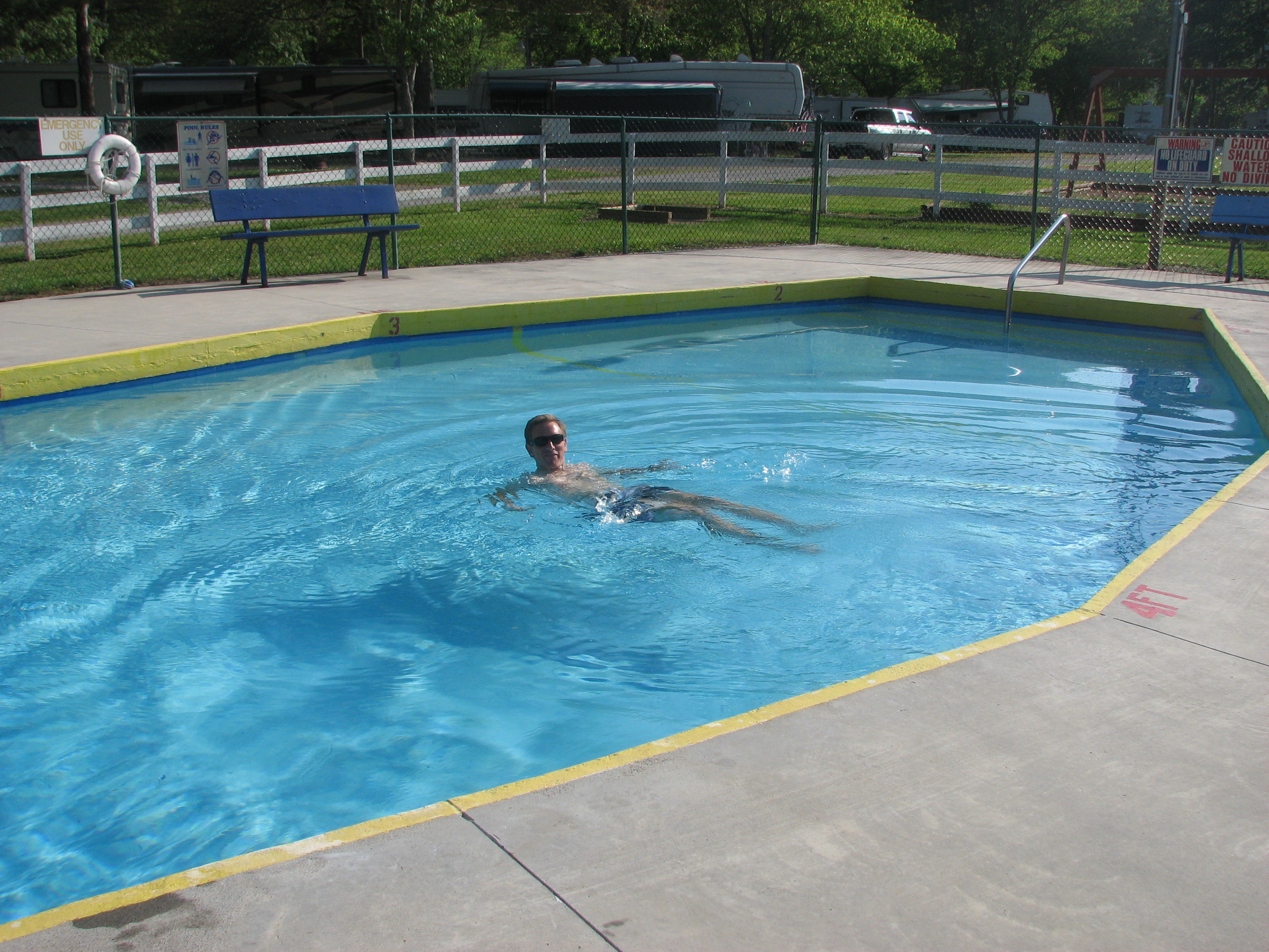We had a nice relaxing day today. It was about 85 degrees so we hit the pool for a nice swim. The campground here is gorgeous so we took all three birds