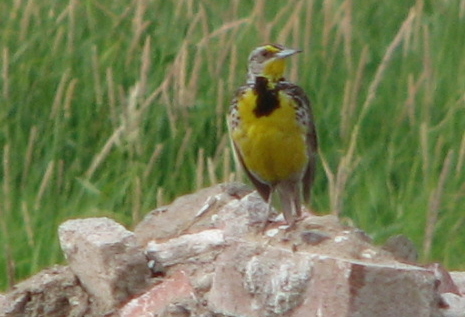 there was the prettiest little yellow bird sitting on the rocks next to us just singing up a storm. Abbey ran over to the window to check him out and mumbled her